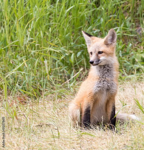 © moosehenderson, Fototapeta premium RED FOX KIT ON GREEN GRASS STOCK IMAGE