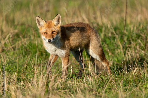 Fototapeta premium Red fox looking for food in a meadow