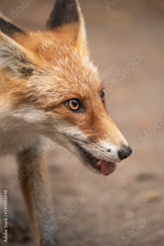 Naklejka premium Red Fox near the fence on the territory of the reserve.