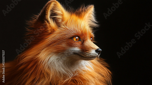 © atex, Obraz premium Red fox portrait against black background.