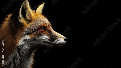 © BerkahStock, Obraz premium Red Fox Portrait Against Black Background