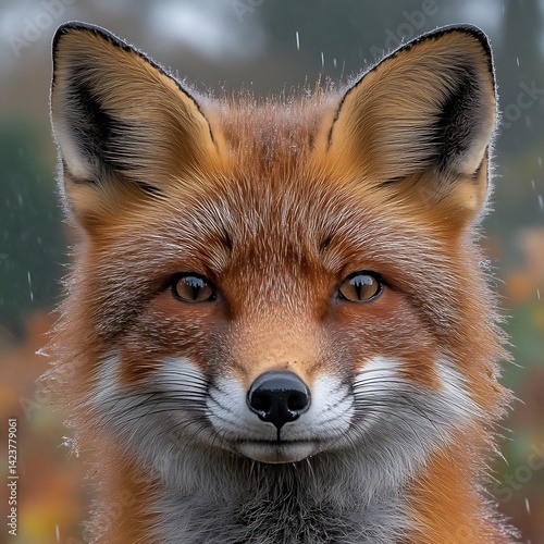 © duit, Fototapeta premium Red Fox Portrait in Autumn Rain