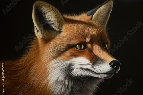© hugo, Fototapeta premium Red fox portrait in black background. Generative AI.