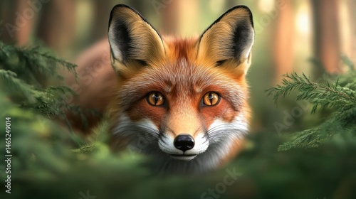 © Amphon, Fototapeta premium Red Fox Portrait in Sun Dappled Forest