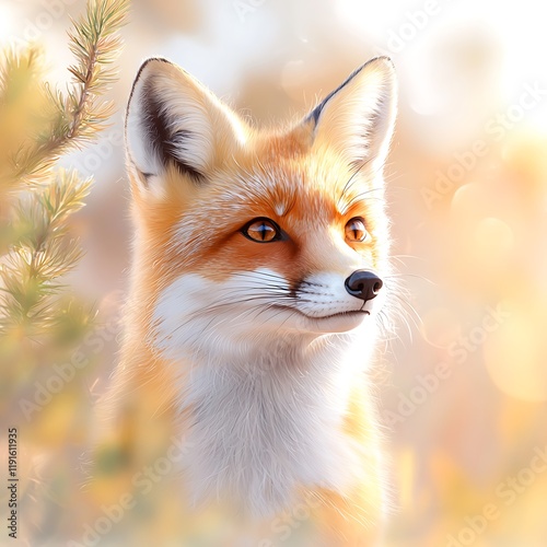 © PPS, Fototapeta premium Red fox portrait in sunlit forest.