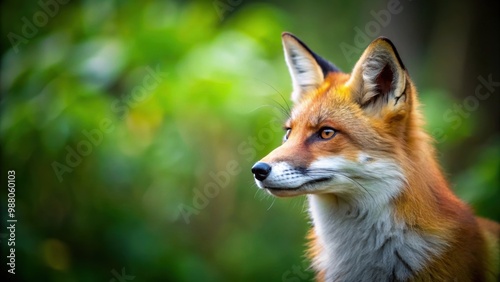 Fototapeta premium Red fox profile in natural habitat, with lush forest background, Red fox,...