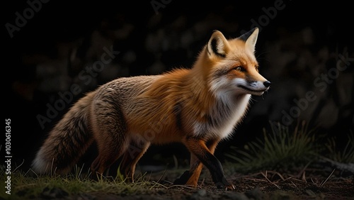 © තනෝජා මදුරංගි සදූ, Obraz premium Red Fox Prowling in the Dark