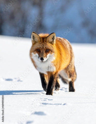 © Manok Mas, Obraz premium Red Fox Prowls Snowy Terrain, Captivating Winter Scene with Animal's Warm Fur