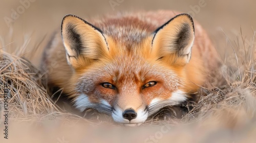 © tugkiara, Obraz premium Red fox resting in tall grass, wildlife scene, nature background, ideal for nature documentaries