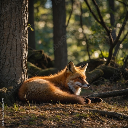 © Muhammad, Fototapeta premium Red Fox Resting Under a Shady Tree.