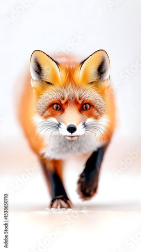 © adityan, Obraz premium Red fox running, snowy background, wildlife portrait, nature