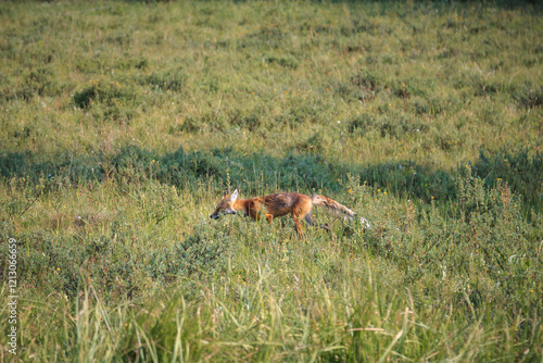 © Stephen, Fototapeta premium Red Fox Running through the Meadow, Yellowstone National Park, Wyoming