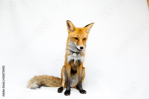 Obraz premium Red fox sits on a white background