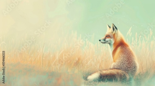 © saritwat, Fototapeta premium red fox sitting in a grassy field pastel color