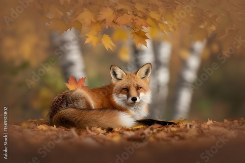 © Your Design Master, Obraz premium Red fox sitting in nature showing its red fur and wild animal features