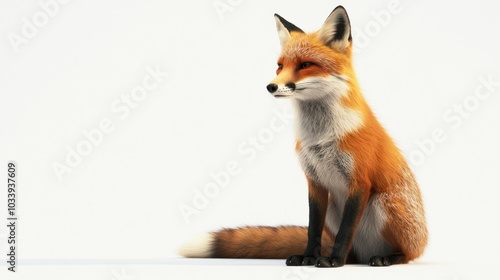 © ellisa_studio, Obraz premium Red Fox Sitting on a White Background