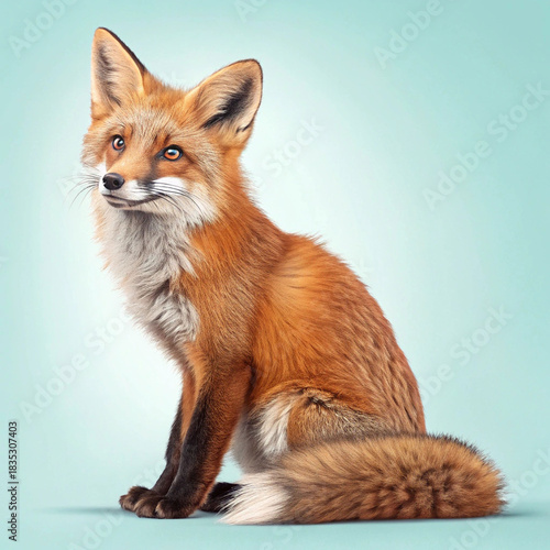 Obraz premium Red Fox Sitting on Pastel Background