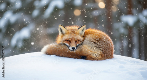 © AURA, Obraz premium red fox sleeping in a snow bag