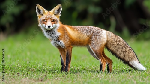 Obraz premium Red Fox Standing Alert in a Sunlit Grassland
