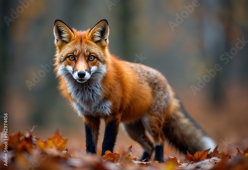 © Galadriel Gesso, Fototapeta premium Red Fox Standing Gracefully in the Serene Woodland Environment