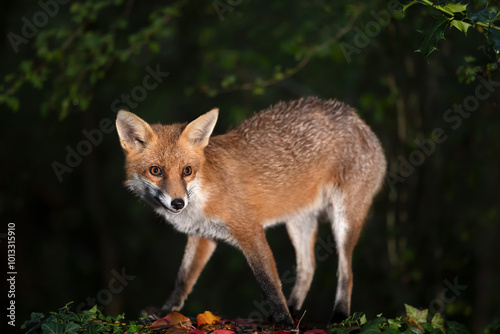 © giedriius, Obraz premium Red fox standing in a forest in autumn
