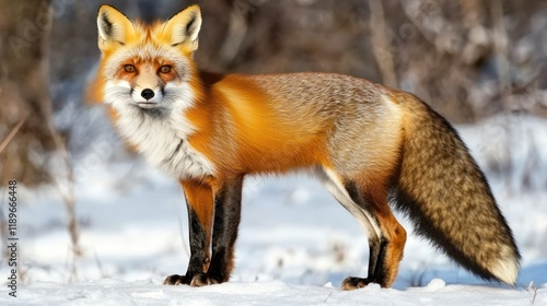 © ahmad, Obraz premium Red fox standing in snowy winter forest. (1)