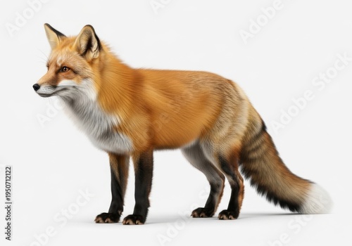 © Ms Vector, Obraz premium Red fox standing on a white background with a curious expression