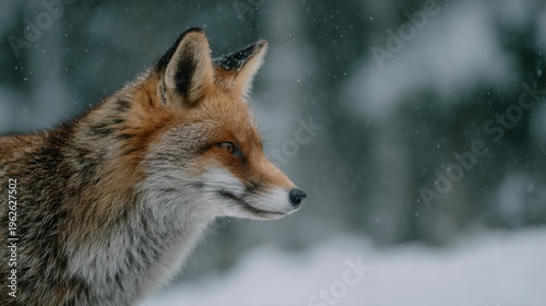 © progressman, Fototapeta premium Red fox stands in snowy forest