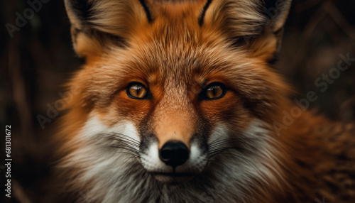 Fototapeta premium Red fox staring, alertness in nature, beauty in wildlife portrait generated by AI