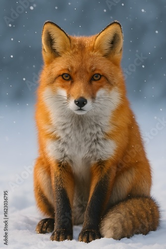 © KUBAYAUR LXR, Fototapeta premium Red Fox Staring Amidst Falling Snow