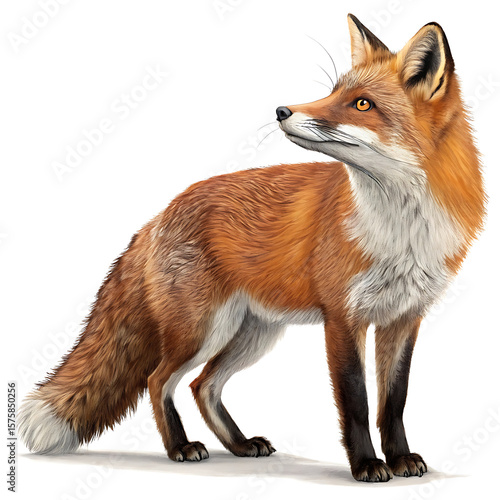 © Ripon, Fototapeta premium Red fox vulpes standing on white background young wild mammal portrait isolated studio shot