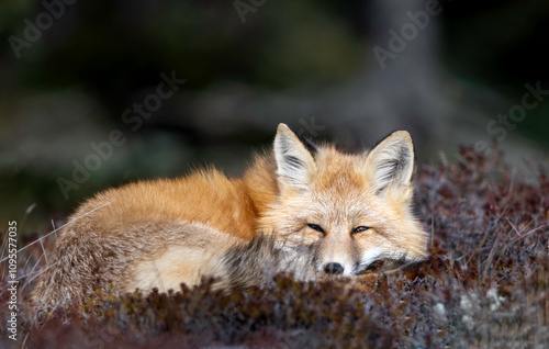 Fototapeta premium Red Fox (Vulpes vulpes), largest of the true foxes and one of the most widely distributed members of the order Carnivora, being present across the entire Northern Hemisphere