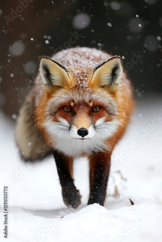 © Outkast, Fototapeta premium Red Fox Walking Through Snowy Winter Forest