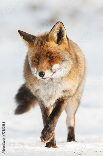 Obraz premium Red fox walks through the snow