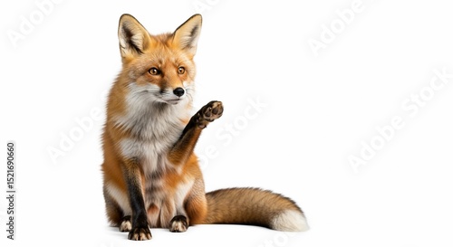 Fototapeta premium Red fox wildlife animal portrait cute fox raising paw pet mammal nature...
