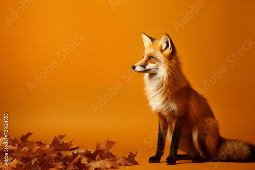 Obraz premium Red Fox with Autumn Leaves on Orange Background