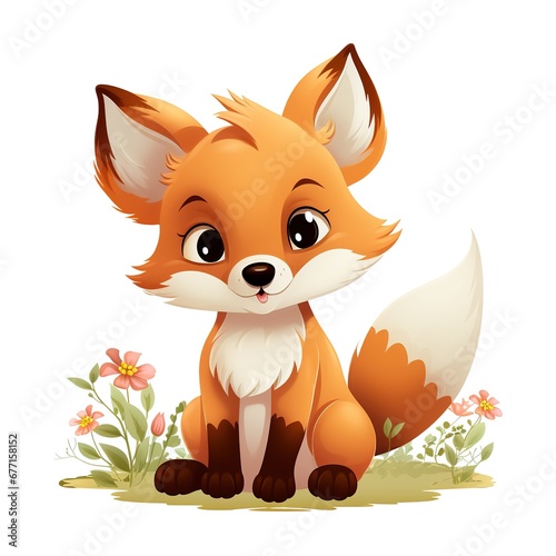 Obraz premium red fox with flowers clipart