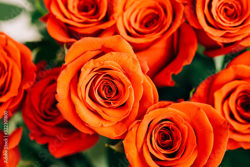 © Kuzmaphoto, Obraz premium Red Fresh Roses on the white background , selective focus