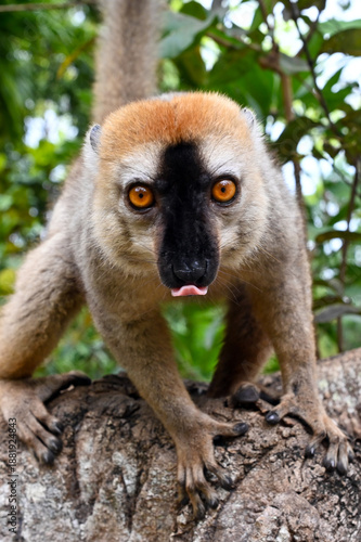 Fototapeta premium Red-fronted Brown Lemur, Eulemur fulvus, Madagascar nature,