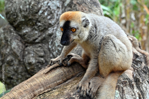 © mirecca, Fototapeta premium Red-fronted Brown Lemur, Eulemur fulvus, Madagascar nature,