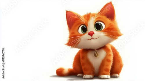 © Olena, Obraz premium Red funny cartoon cat on a white background.
