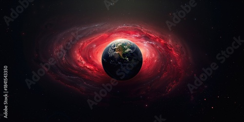 Obraz premium Red galaxy scene with planetary objects, designed for science and astronomy...