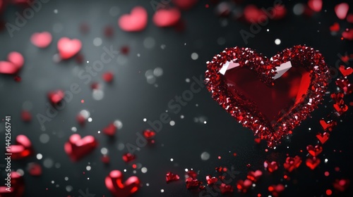 © setiadio, Obraz premium Red gemstone heart on dark background