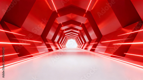 © JIAHAO LI, Fototapeta premium Red geometric tunnel with neon lights