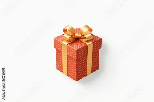© Ficky, Fototapeta premium Red gift box gold ribbon white background