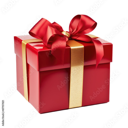 Obraz premium Red gift box isolated on transparent background. Generative ai