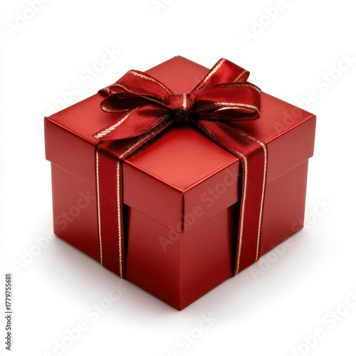 © Fazila, Obraz premium Red Gift Box Isolated on White Background.