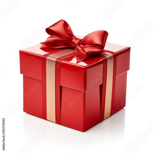 © dekzer_ai, Obraz premium Red Gift Box isolated on White Background.
