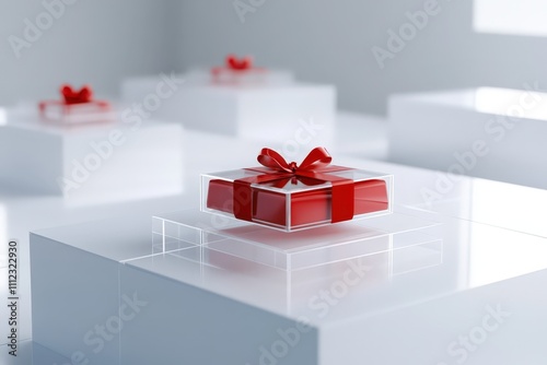© Photocreo Bednarek, Fototapeta premium Red gift box on acrylic table in minimalist white background