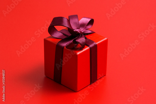 Obraz premium Red gift box on red background